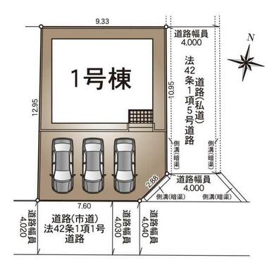 | 用途地域 | 1種低層 | 接道状況 | 東4.0m 私道 接面10.9m 位置指定あり 南4.0m 公道 接面7.6m |