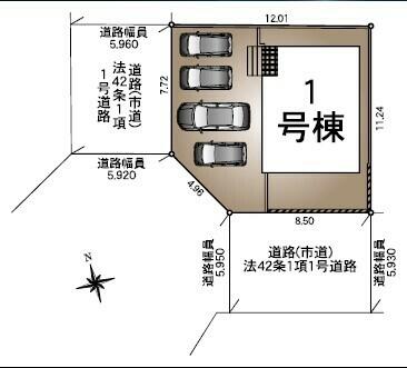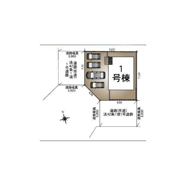 | 用途地域 | 1種低層 | 接道状況 | 西5.9m 公道 接面7.7m 南5.9m 公道 接面8.5m |